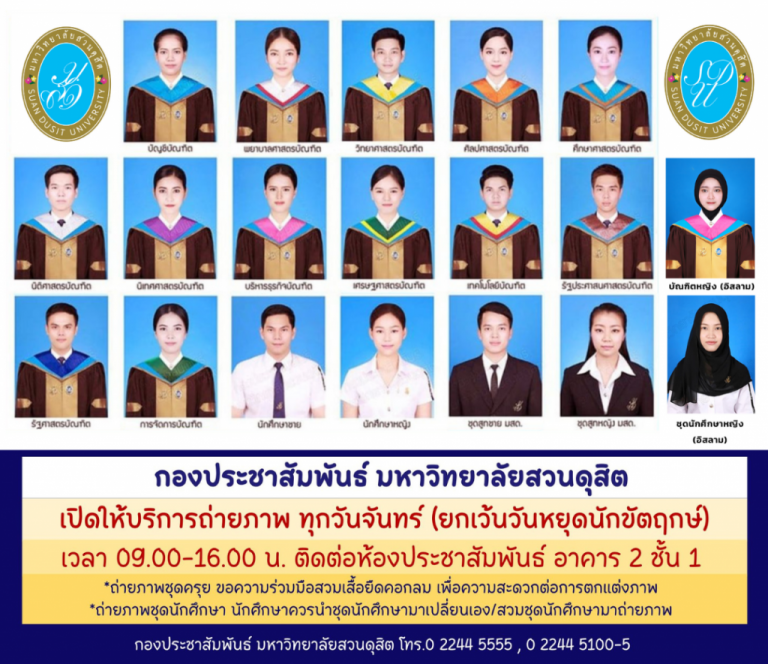 ****บริการถ่ายภาพชุดนักศึกษา ติดต่อ กองประชาสัมพันธ์ อาคาร 2 ชั้น 1 เปิดบริการทุกวันจันทร์ เวลา 9.00 – 15.00 น.