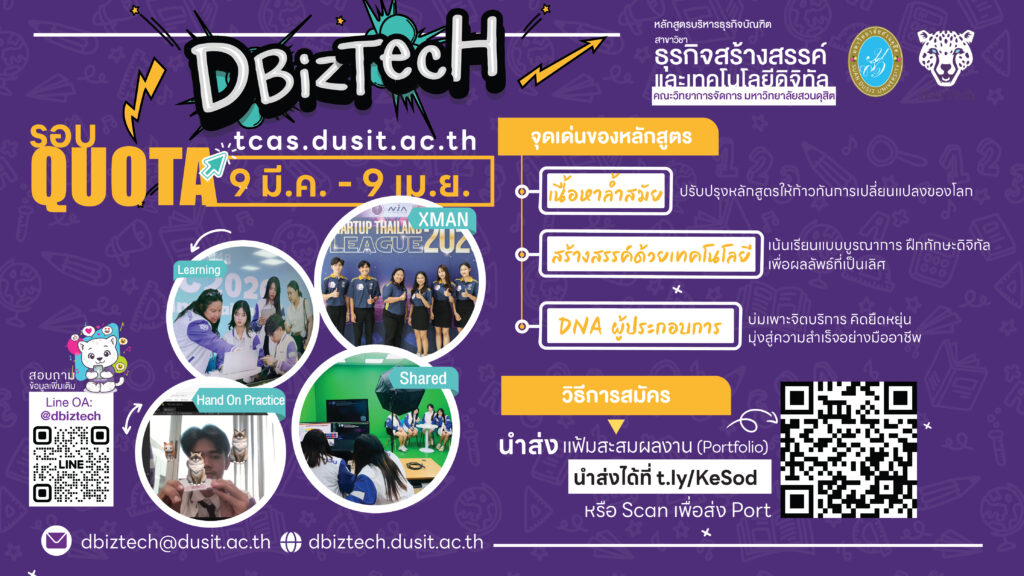 กำหนดการและช่องทางสอบสัมภาษณ์ รอบ Quota แผนรับนักศึกษา การรับนักศึกษาพิการ ค่าธรรมเนียมการศึกษา ทุนการศึกษา หอพักนักศึกษา คำถามที่พบบ่อย ติดต่อสอบถามเรื่องการสมัครเรียน คณะวิทยาการจัดการ มหาวิทยาลัยสวนดุสิต เปิดรับสมัครบุคคลเข้าศึกษา หลักสูตรบริหารธุรกิจบัณฑิต สาขาวิชาบริหารธุรกิจ ภาคปกตินอกเวลาราชการ ประจำปีการศึกษา 2569มหาวิทยาลัยสวนดุสิต เปิดรับสมัครนักศึกษาภาคปกติ ระดับปริญญาตรี ปีการศึกษา 2569 รอบที่ 2 Quota 9 มีนาคม ถึง 9 เมษายน 2569โรงเรียนกฎหมายและการเมือง มหาวิทยาลัยสวนดุสิต เปิดรับสมัครผู้สนใจเข้าศึกษาหลักสูตรนิติศาสตรบัณฑิต ภาคนอกเวลาราชการ รุ่นที่ 7 ข่าวประชาสัมพันธ์ ประกาศรายชื่อผู้ผ่านการคัดเลือกและมีสิทธิ์เข้ารับการศึกษา หลักสูตรวิทยาศาสตรบัณฑิต สาขาวิชาเทคโนโลยีการประกอบอาหารและการบริการ ภาคปกติ นอกเวลาราชการ รุ่นที่ 1 รอบที่ 1 ภาคการศึกษาที่ 1 ปีการศึกษา 2569คณะวิทยาการจัดการ มหาวิทยาลัยสวนดุสิต เปิดรับสมัครบุคคลเข้าศึกษา หลักสูตรบริหารธุรกิจบัณฑิต สาขาวิชาบริหารธุรกิจ ภาคปกตินอกเวลาราชการ ประจำปีการศึกษา 2569มหาวิทยาลัยสวนดุสิต เปิดรับสมัครนักศึกษาภาคปกติ ระดับปริญญาตรี ปีการศึกษา 2569 รอบที่ 2 Quota 9 มีนาคม ถึง 9 เมษายน 2569คณะพยาบาลศาสตร์ มหาวิทยาลัยสวนดุสิต เปิดรับสมัครผู้สนใจเข้าอบรมหลักสูตรประกาศนียบัตรผู้ช่วยพยาบาล รุ่นที่ 12 ประจำปีการศึกษา 2569 รอบที่ 2คณะวิทยาศาสตร์และเทคโนโลยี มหาวิทยาลัยสวนดุสิต เปิดรับสมัครผู้สนใจเข้าศึกษา หลักสูตรวิทยาศาสตรบัณฑิต สาขาวิชาความมั่นคงปลอดภัยไซเบอร์ ภาคปกตินอกเวลาราชการโรงเรียนการเรือน มหาวิทยาลัยสวนดุสิต เปิดรับสมัครผู้สนใจเข้าศึกษา หลักสูตรวิทยาศาสตรบัณฑิต สาขาวิชาเทคโนโลยีการประกอบอาหารและการบริการ ภาคปกติ นอกเวลาราชการโรงเรียนกฎหมายและการเมือง มหาวิทยาลัยสวนดุสิต เปิดรับสมัครผู้สนใจเข้าศึกษาหลักสูตรนิติศาสตรบัณฑิต ภาคนอกเวลาราชการ รุ่นที่ 7ประกาศรายชื่อผู้ผ่านการคัดเลือกและมีสิทธิ์เข้ารับการศึกษา รอบที่ 1 Portfolio ประจำปีการศึกษา 2569 หลักสูตรพยาบาลศาสตรบัณฑิต คณะพยาบาลศาสตร์ มหาวิทยาลัยสวนดุสิต ข่าวทั้งหมด แนะนำหลักสูตรศูนย์การศึกษา วิทยาเขตสุพรรณบุรีศูนย์การศึกษา ลำปางศูนย์การศึกษา ตรังศูนย์การศึกษา นครนายกศูนย์การศึกษา หัวหิน ข่าวรับสมัคร TCAS ทั้งหมดรอบที่ 1รอบที่ 2รอบที่ 3รอบที่ 4 โรงเรียนกฎหมายและการเมือง มหาวิทยาลัยสวนดุสิต เปิดรับสมัครผู้สนใจเข้าศึกษาหลักสูตรนิติศาสตรบัณฑิต ภาคนอกเวลาราชการ รุ่นที่ 6ประกาศรายชื่อบุคคลผู้ผ่านก