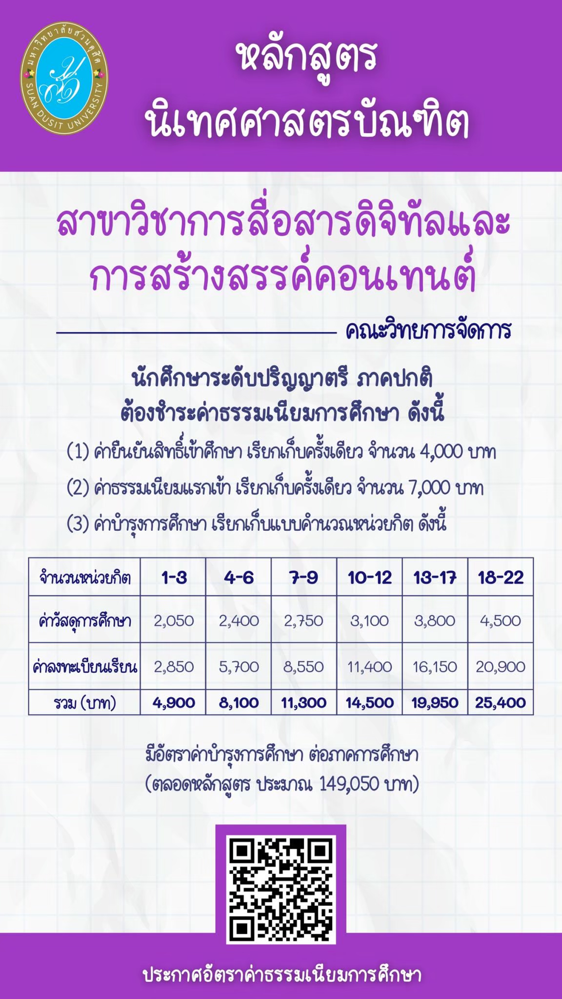 มหาวิทยาลัยสวนดุสิต หรือศึกษาในโรงเรียนที่มีข้อตกลงความร่วมมือทางวิชาการกับมหาวิทยาลัยสวนดุสิต หรือคณะวิทยาการจัดการ