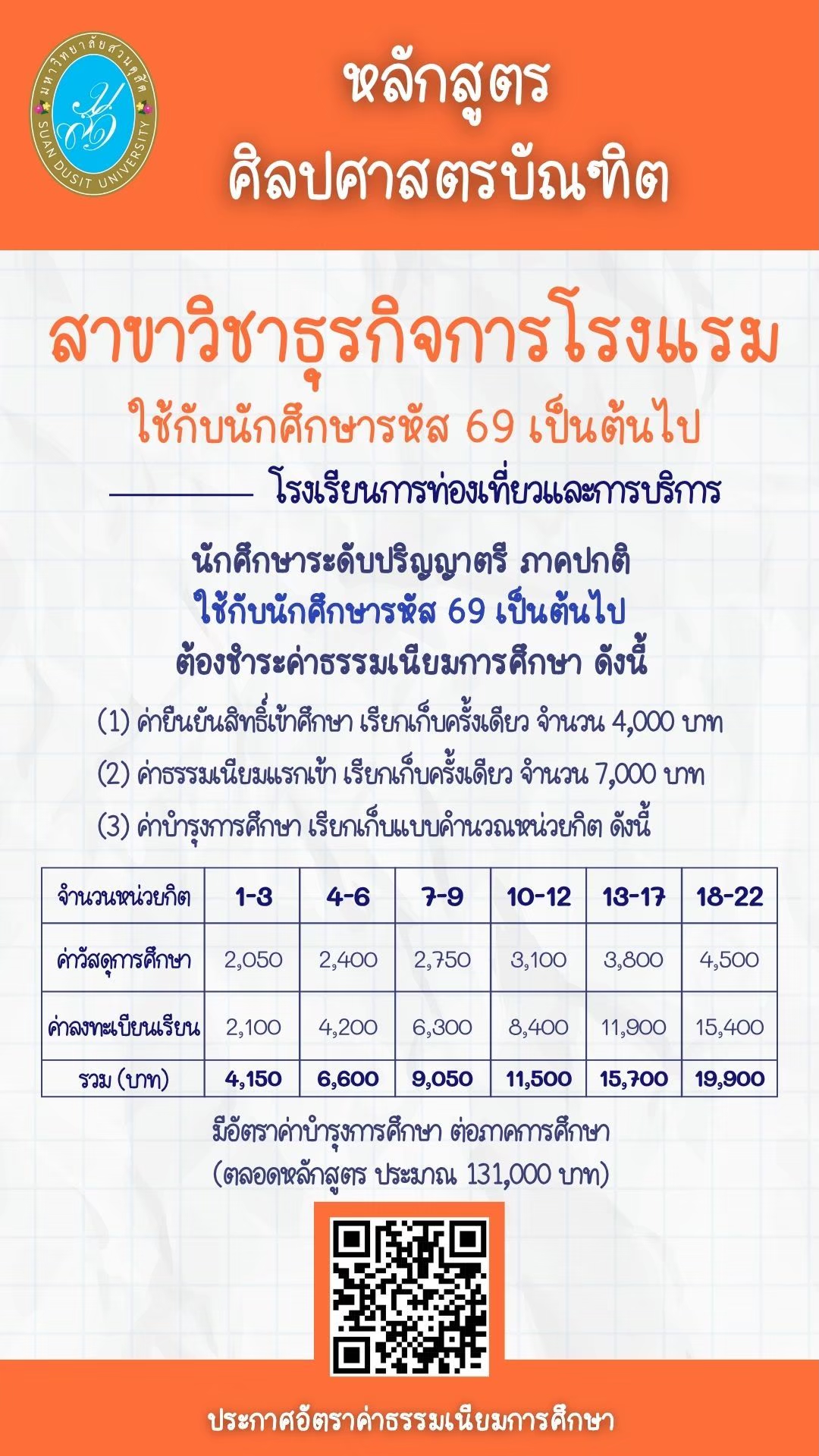 * นำส่ง TCASFolio หรือ Portfolio ทั่วไป : hotelbusiness.thm.sdu@gmail.com