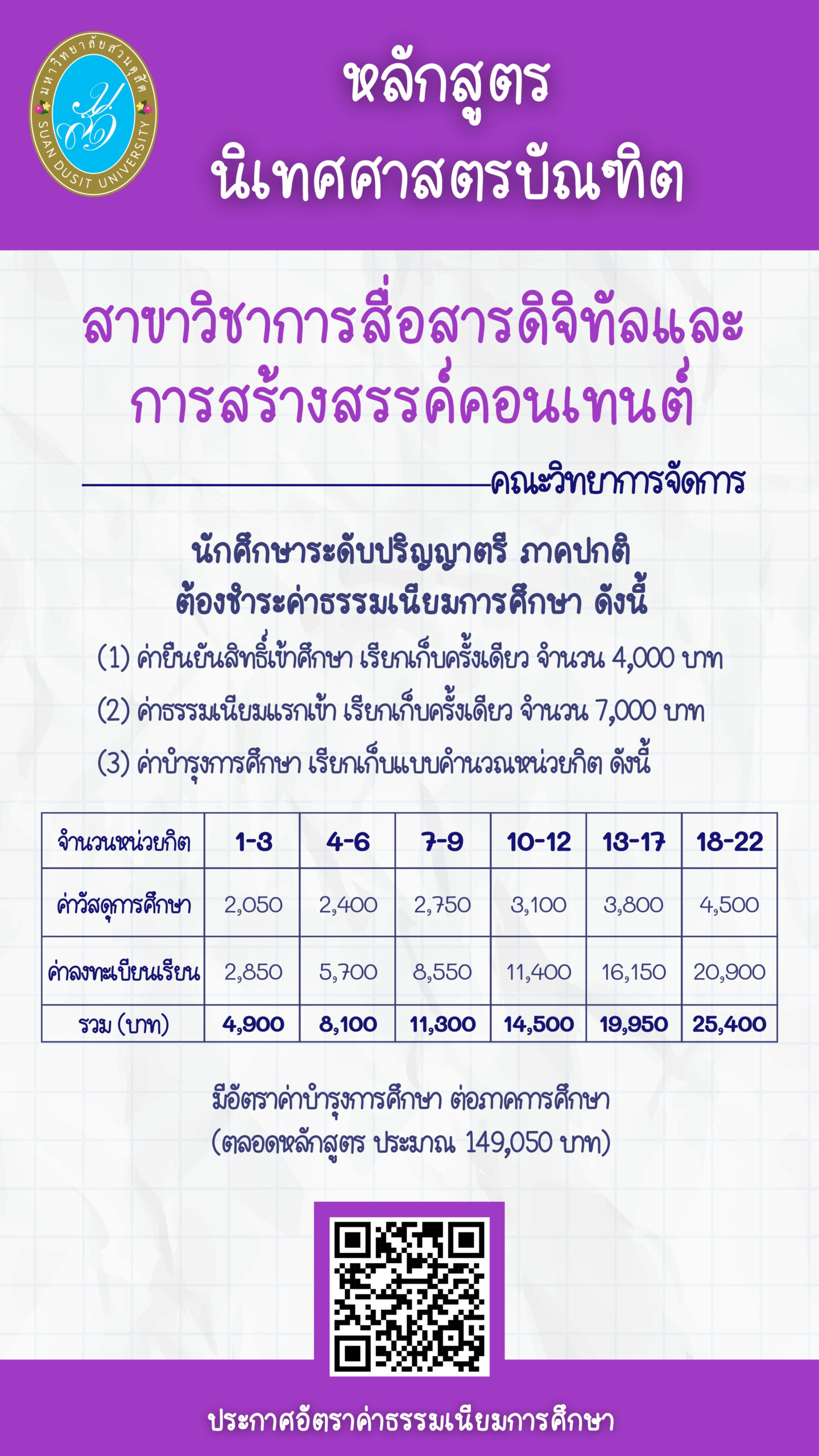 มหาวิทยาลัยสวนดุสิต หรือศึกษาในโรงเรียนที่มีข้อตกลงความร่วมมือทางวิชาการกับมหาวิทยาลัยสวนดุสิต หรือคณะวิทยาการจัดการ